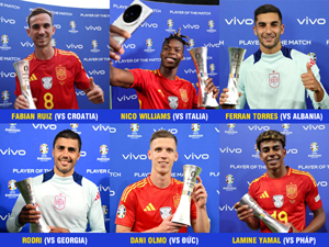 | Tây Ban Nha giành trọn bộ 6 giải MVP ở EURO 2024 | ||