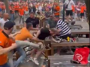 Trước trận bán kết EURO 2024 giữa Hà Lan và Anh, nhóm CĐV của 2 đội đã xảy ra bạo loạn trước cửa một quán bar. |