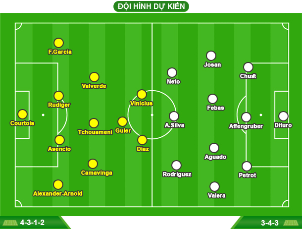 - REAL MADRID: Vắng Militao, Mbappe, Bellingham, Ceballos và Rodrygo (chấn thương); Mastantuono (treo giò); khả năng ra sân của Carreras, Mendy và Alaba còn bỏ ngỏ.