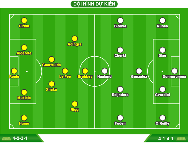 Bên kia chiến tuyến, Man City cũng mất 2 cầu thủ vì AFCON 2025 là Ait-Nouri và Marmoush. Nhưng 2 mất mát này không ảnh hưởng lớn tới đội hình của Pep Guardiola. Ngoài Erling Haaland, The Citizens có thể kì vọng sự bùng nổ của 2 ngôi sao khác trên hàng công là Phil Foden và Rayan Cherki.