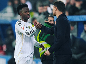 Khi rời sân nhường chỗ cho đồng đội trong trận Real Madrid thắng Alaves, Vinicius đã tiến đến ôm HLV Xabi Alonso. Hành động này cho thấy toàn thể các cầu thủ Real đều ủng hộ và chiến đấu hết mình vì nhà cầm quân người Tây Ban Nha. |