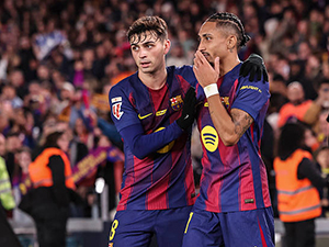 Tỏa sáng với cú đúp bàn thắng, Raphinha đã góp công lớn giúp Barcelona vượt qua Osasuna ở vòng 16 La Liga. Qua đó, đội bóng xứ Catalan giữ vững ngôi đầu bảng và tạm thời gia tăng cách biệt với Real Madrid lên 7 điểm. |