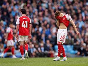 Sau trận thua Bournemouth, Arsenal tiếp tục gây thất vọng ở Premier League khi để thua đối thủ cạnh tranh trực tiếp là Man City. Thất bại ở Etihad đã khiến thầy trò Mikel Arteta đánh mất hoàn toàn lợi thế trong cuộc đua vô địch. Họ có thể rơi vào bi kịch ở giai đoạn cuối mùa. |